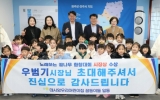 전주시 최준규 기자2025. 11.28[시사토픽뉴스]전주시는 28일 데시앙우리어린이집 소속 원아들이 전주시장실을 찾았다고 밝혔다. 우범기 전주시장과 어린이집 원아들의 이번 만남은 지난달 23일 한동문화예술단이 주최한 ‘제4회 노래하는 꿈나무 합창경연대회’에서 시장상을 받은 데시앙우리어린이집 원아들을 축하하기 위해 마련됐다. 우 시장은 이날 아이들을 따뜻하고 환한 미소로 맞이하고, 아이들이 좋아하는 과자가 담긴 선물꾸러미를 전달하며 즐거운 시간을 가졌다. 전혜경 원장은 “어린이집 원아들이 합창대회 참여 및 수상 등을 통해 자신감과 성취감을 키우고, 아이들의 ...