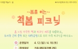 교육 최준규 기자2026. 03.31[시사토픽뉴스] 부산광역시립해운대도서관은 오는 4월 12일과 18일 해운대도서관 인근 자연 공간에서 가족 8팀을 대상으로 봄 야외 독서문화행사 ‘봄을 여는 책봄 피크닉’을 운영한다. 이번 행사는 도서관 인근 자연 공간에서 가족이 함께 책을 읽으며 여유로운 시간을 보낼 수 있도록 마련했다. 프로그램은 회차별 2팀씩 총 8팀을 대상으로 운영되며, 4월 12일과 18일 양일에 걸쳐 1회차(10:00~13:00), 2회차(14:00~17:00)로 나누어 진행된다. 참여 가족은 도서관 1층 로비 ‘피크닉 전용 서가’에서 봄 관련 ...