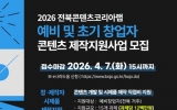 전라북도 최준규 기자2026. 03.16[시사토픽뉴스](재)전북특별자치도 콘텐츠융합진흥원 전북콘텐츠코리아랩은 콘텐츠 분야 예비 창업자와 3년 이내 초기 창업기업의 경쟁력 강화를 위한 콘텐츠 제작지원사업 참여자를 모집한다. 전북콘텐츠코리아랩은 지역 기반의 지속 가능한 콘텐츠 창·제작 생태계 조성과 활성화를 위해 운영되고 있으며, 도내 콘텐츠 창작자와 초기 창업기업의 창작 활동 및 사업화를 지원하고 있다. 이번 제작지원사업은 통합 공고 형태로 진행되며, ▲ 예비 창업자 시제품 제작지원, ▲ 초기 창업기업 사업화 지원 등 두 개 분야로 구분해 추진한다. 창·제작자 시제...