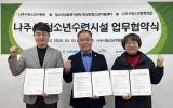 남원시 최준규 기자2026. 03.16[시사토픽뉴스]전남 나주시가 위탁 운영하는 청소년수련관과 청소년문화의집, 청소년상담복지센터, 학교밖청소년지원센터는 최근 업무협약을 체결하고 지역 청소년 지원체계 강화를 위해 상호 협력하기로 했다. 이번 협약은 지역 청소년의 건강한 성장 지원과 위기청소년 조기 발굴을 위한 협력 기반을 마련하기 위해 추진됐다. 협약을 체결한 각 기관은 위기청소년 발굴과 연계 지원을 비롯해 청소년 활동 활성화, 기관 간 협력체계 구축 등을 위해 적극 협력할 계획이다. 특히 기관 간 정보 공유와 실무 협의를 정례화하고 각 기관이 보유한 공간과 전문 ...