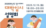 사회 최준규 기자2025. 11.27[시사토픽뉴스]서울 도봉구가 12월 15일 오후 6시 도봉구청 2층 선인봉홀에서 2026학년도 대입 정시 전략 설명회를 개최한다. 설명회에는 서울시교육청 대학진학지도지원단 소속의 영동일고 윤희태 교사가 강사로 나서 대입 정시합격을 위한 지원전략을 제공한다. 이번 설명회는 지난 13일 수학능력시험을 치르고 정시 지원을 앞둔 수험생과 학부모들에게 실질적인 도움을 줄 것으로 기대된다. 선착순 300명까지 모집하며, 신청은 11월 27일 오전 9시부터 도봉구청 누리집(소통참여→인터넷 접수·예약)에서 가능하다. 이외에도 수험생의 성공...