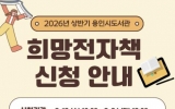 전주시 최준규 기자2026. 03.16[시사토픽뉴스]용인특례시는 오는 3월 18일부터 24일까지 상반기 전자책 희망 도서 신청을 받는다고 16일 밝혔다. 희망 도서 신청은 시 도서관 정회원이라면 누구나 가능하다. 소장형 전자책 누리집 ‘희망 도서’ 메뉴에서 1인당 최대 3권까지 신청할 수 있다. 신청 도서가 입고되면 신청자에게 우선 대출되며, 동일한 도서를 여러 사람이 신청했을 때는 최초 신청자에게 우선 대출된다. 빌린 전자책은 14일간 이용할 수 있다. 이미 소장 중인 도서나 전문서, 수험서 등은 희망 도서 선정 제외 기준에 따라 반려될 수 있다. 시 관계...