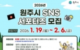 사회 최준규 기자2026. 01.19[시사토픽뉴스]원주시는 참신한 아이디어와 열정을 가진 ‘2026년 원주시 SNS 서포터즈’를 다음 달 6일까지 모집한다. 모집 대상은 원주시 홍보에 관심이 많고 사회관계망서비스(SNS) 운영이 활발한 사람이다. 모집 인원은 총 30명으로, 분야별로 유튜브 10명, 인스타그램 10명, 페이스북 6명, 블로그 4명을 선발한다. 선발된 서포터즈는 오는 3월부터 12월까지 10개월간 활동하며, 현장 취재를 통한 콘텐츠 제작을 비롯해 시 공식 채널 홍보, 착한가격업소 소개 등 다양한 활동을 수행하게 된다. 서포터즈에게는 콘텐츠 제작에 ...