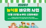 교육 최준규 기자2026. 01.16[시사토픽뉴스]무주군은 올해 ‘농식품 바우처(카드) 지원 사업’ 지원 대상을 기존 임산부, 영유아, 아동이 있는 생계급여 수급 가구에서 청년층(만 34세 이하)이 포함된 가구로 확대한다. 이번 조치는 저소득 청년들의 식료품비 부담을 경감하고 지역 농산물 소비를 촉진하기 위한 것으로, 먹거리 복지의 확대와 지역 경제 활성화에 이바지할 것으로 기대된다. 또한 지원 기간도 기존 10개월에서 12개월로 연장해 안정적인 먹거리 지원기반이 마련될 것으로 보인다. 이용권 지원금은 월 4만 원(1인 가구)부터 최대 18만 7천 원(10인...