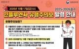 임실군 최준규 기자2025. 11.25[시사토픽뉴스]임실군 보건의료원이 2025~2026 절기 인플루엔자 유행이 예년보다 이르게 시작됨에 따라, 인플루엔자 예방 수칙을 준수하도록 당부했다. 인플루엔자는 국내에서 겨울철에 유행하는 대표적인 급성호흡기감염병으로, 갑작스러운 고열과 기침, 인후통 등의 증상이 특징적이다. 매년 11월부터 4월까지 가장 많은 환자가 발생하며, 65세 이상 고위험군은 폐렴 등 중증으로 진행될 수 있어, 인플루엔자 감염 예방을 위한 예방 수칙을 준수하는 것이 중요하다. 인플루엔자 예방을 위해서는 ▲65세 이상 어르신 등 고위험군은 인플...