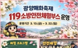 건강 최준규 기자2026. 03.12[시사토픽뉴스]전남소방본부가 오는 13일부터 22일까지 10일간 열리는 ‘제25회 광양매화축제’ 현장에서 산하 광양소방서를 주축으로 ‘119소방안전체험부스’를 운영한다고 밝혔다. 이번 체험부스는 전남의 대표적인 봄꽃 축제를 맞아 상춘객들에게 다채로운 소방안전체험 기회를 제공, 일상 속 위기 대응 능력을 향상하고 도내 전반에 안전 문화를 널리 정착시키기 위해 마련됐다. 주요 체험 프로그램은 남녀노소 누구나 쉽게 참여할 수 있도록 구성됐다. △마네킨을 활용한 심폐소생술(CPR) 교육 △빛·연기 소화기를 활용한 실감 나는 화재진압 체...