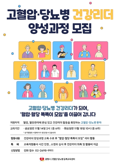 |  고혈압·당뇨병 건강리더 양성과정 모집 안내문. |