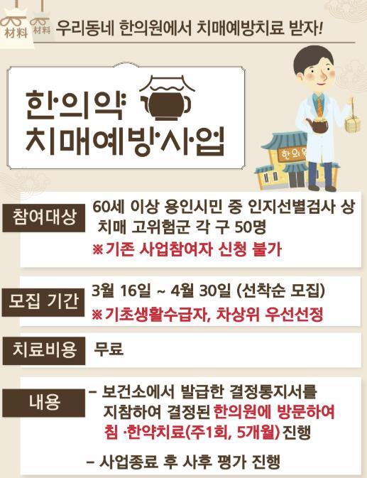 ![]() 용인특례시 한의약 치매예방사업 프로그램 안내 포스터 |