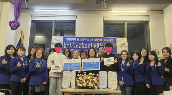 이날 상주연화로타리클럽은 인터넷 강의를 듣고 검정고시를 준비하는 학교 밖 청소년들을 위해 태블릿PC 2대와 통신비 100만원도 전달했다.