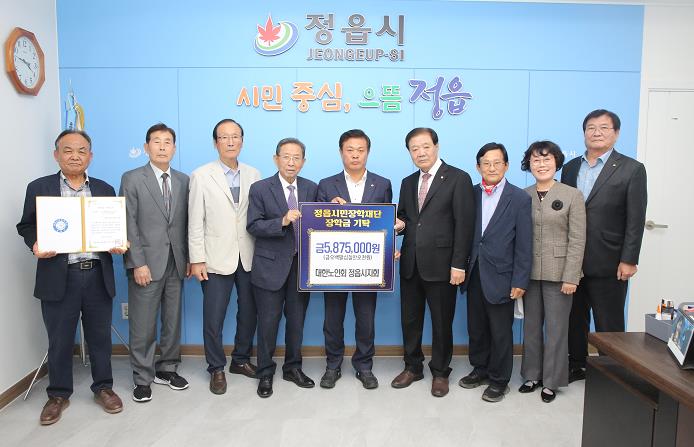 대한노인회 정읍시지회는 지난 28일 정읍시민장학재단에 장학금 587만5000원을 기탁했다.