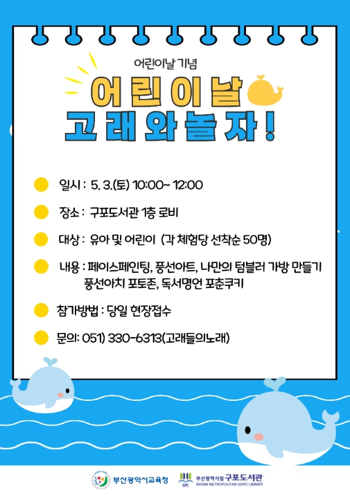 ![]() ‘어린이날, 고래와 놀자!’ 행사 포스터 |