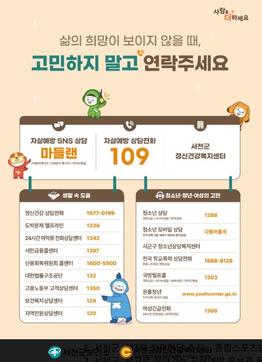 특히, 5월 1일부터 15일까지 '교원 마음건강주간'을 맞아 서천군은 교원들의 마음건강 회복을 위해 마음건강 안내서와 심리지원 키트를 배부하고, 직무 스트레스와 대인관계 등으로 어려움을 겪는 교원이 서천군정신건강복지센터의 전문적 지원을 받을 수 있도록 안내했다.