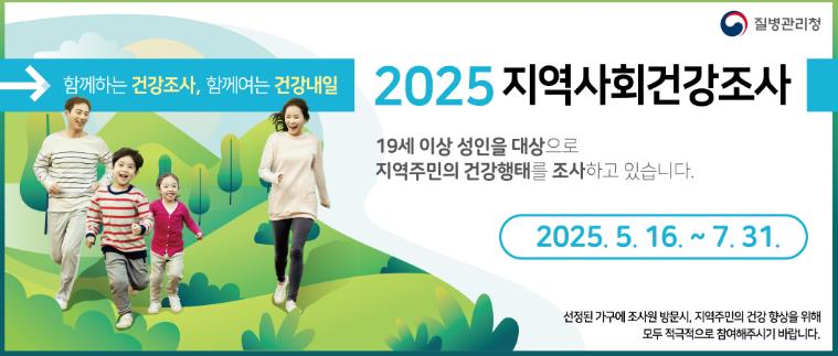 시는 5월 16일부터 7월 31일까지 질병관리청, 원광대학교 의과대학과 함께 '2025년 지역사회건강조사'를 공동 수행한다고 14일 밝혔다.