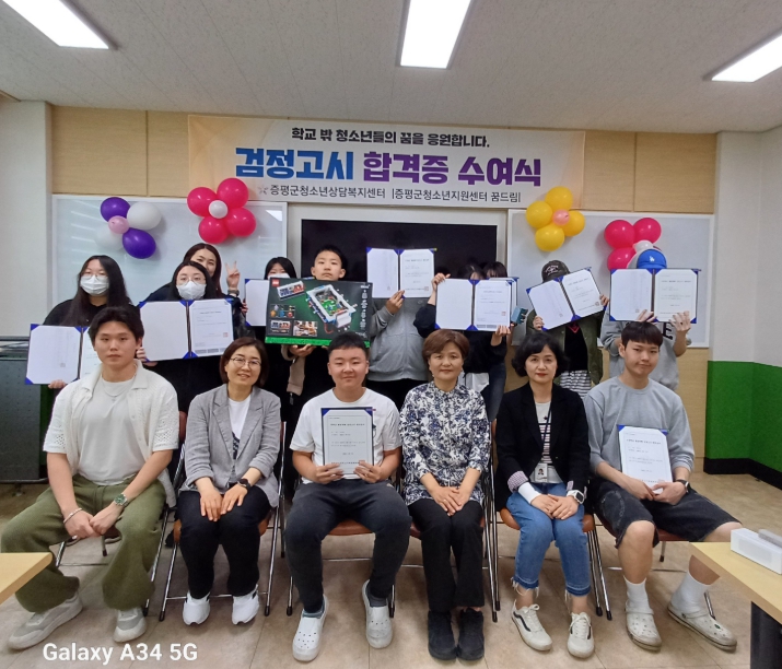 센터는 지난 15일 학습 멘토 선생님들과 함께 검정고시에 합격한 청소년들을 축하하고 응원하는 합격증 수여식을 진행했다.