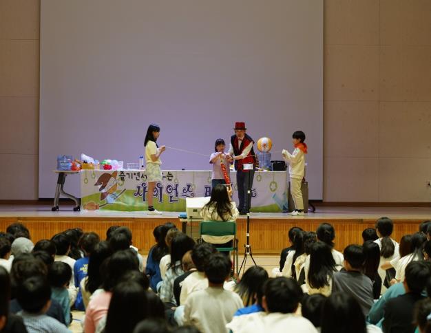 특히 오전에는 이명재 교장이 마술사 복장을 하고 전교생을 대상으로 흥미진진한 ‘사이언스 매직쇼’를 진행했다. 과학의 원리를 접목한 마술 공연은 학생들에게 과학적 사고력을 길러주는 즐거운 학습의 장이 됐으며, 선생님들에게는 일상에서 벗어나 잠시나마 쉼과 여유를 누릴 수 있는 시간이 됐다.