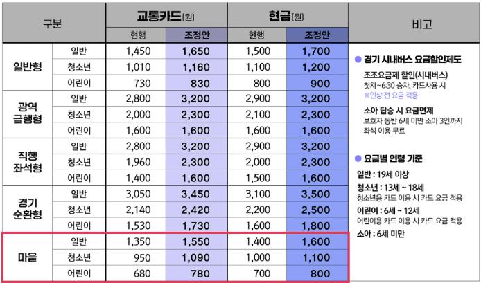 ![]() 경기도 시내‧광역버스, 성남시 마을버스 요금 인상표 |