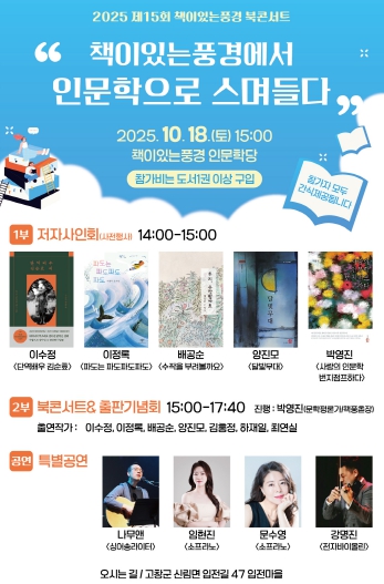 또한, 북콘서트의 열기를 이어 특별공연 무대도 마련된다. 싱어송라이터 ‘나무앤’과 소프라노 임현진이 참여해 가을밤의 정취를 물들이는 음악 공연을 선보인다. 클래식과 대중음악이 어우러진 이번 무대는 문학적 감성과 어울리며 행사의 분위기를 한층 더 풍성하게 할 것으로 기대된다.