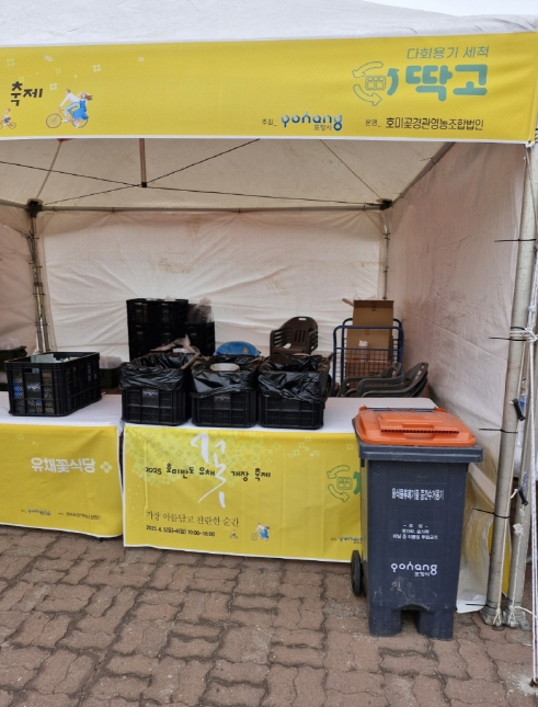 ![]() 다회용기 사용을 시범 운영한 호미반도 유채꽃 축제 현장 |