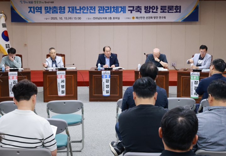 이후 강정일 의원이 좌장을 맡아 진행된 토론에서는 장경석 전라남도 자연재난과장이 참여한 가운데, 선제적 재난안전 관리를 위한 정책적 지원 방향과 실효성 확보 방안에 대해 논의했다.