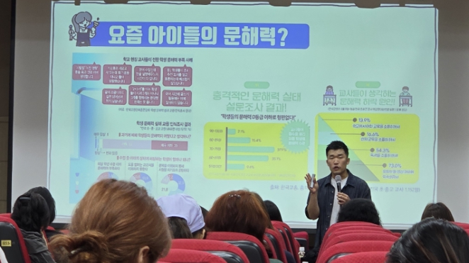 10월 16일 2회차 연수에서는 EBS '당신의 문해력', '책맹인류' 등을 연출한 민정홍 PD가 강사로 나서, AI(인공지능) 시대 학교교육에서의 문해력과 공동체성의 역할을 주제로 강연을 펼쳤다.