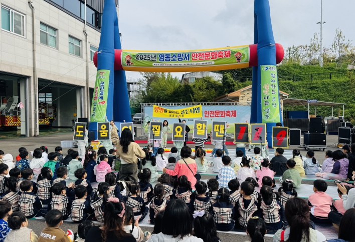 ![]() 어린이 119한마당 대축제 행사 사진(영동유치원 소방동요 시연) |