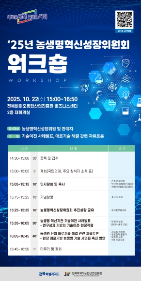 ![]() 전북도 농생명혁신성장위원회, 현장 중심 워크숍 개최 포스터 |