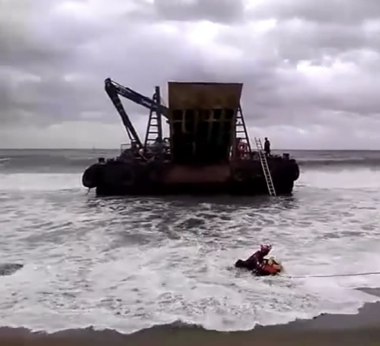 울산해경에 따르면, 표류 선박은 A호(499톤, 부선, 부산선적, 승선원 1명)로 임랑해수욕장 인근 해상에서 투묘중 강한 풍랑으로 인해 닻줄이 터져 모래해안가로 밀려 좌주 된 것으로 확인됐다.