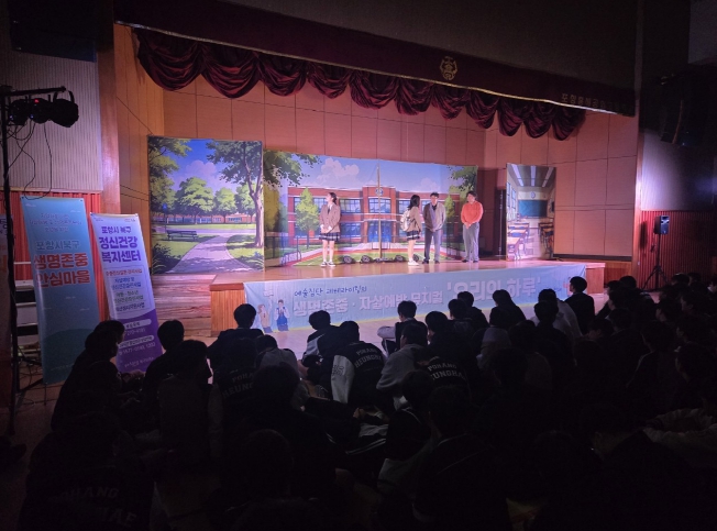공연은 22일 흥해공업고등학교와 장흥중학교에서 각각 진행됐다. ‘생명존중 안심마을’은 지역사회 주도로 촘촘한 생명안전망을 구축하고, 공동체 참여로 자살예방 문화를 활성화하는 전국적 사업이다.