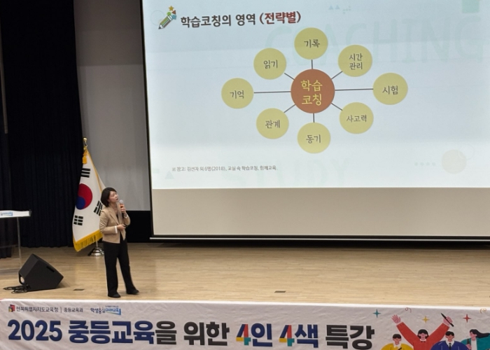 [시사토픽뉴스]전북특별자치도교육청은 23일 창조나래 3층 시청각실에서 중등 교장(감), 교사, 교육전문직원 200여 명을 대상으로 ‘2025 중등 학력신장 4인 4색’ 세 번째 특강을 개최했다.