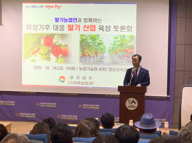 유명현 경남도 균형발전본부장은 “전국 1위 경남의 주 소득 작목인 딸기 산업의 경쟁력을 높이기 위해서는 기후변화 맞춤형 전략이 필요하다”라며, “폭염, 극한호우 등 이상기후에 효과적으로 대응할 수 있는 정책사업의 발굴과 지원에 최선을 다하겠다”라고 밝혔다.