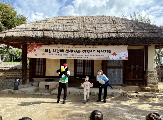 ![]() 울산교육청은 25일 외솔최현배선생 생가터에서 울산 관내 영유아 및 저학년을 대상으로 '외솔최현배선생님과 까막이' 이야기극 공연을 열었다 |