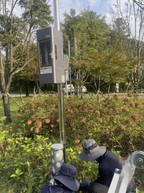 ![]() 해충 퇴치를 위해 친환경 포충기를 설치하고 있다 |