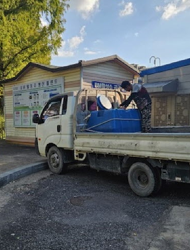 ![]() 농업인이 BM활성수를 용기에 공급받고 있는 모습 |