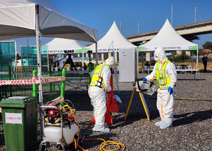 군산시 및 관계기관들도 현장훈련을 통해 ▲의심축 신고에 따른 초동 대응 및 준비사항 점검 ▲의사환축 확인 및 대응 ▲살처분 ▲상황 해제 ▲사후관리 순으로 방역조치 전 과정을 점검했다.
