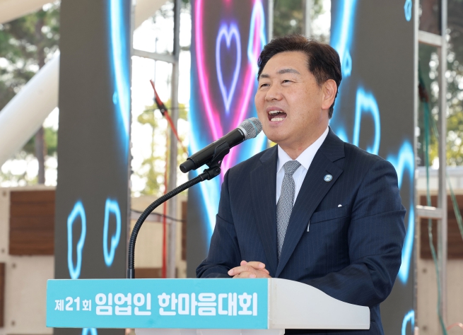 |  31일 군산시 새만금 비응공원에서 도내 임업인들의 화합과 소통을 위한 ‘제21회 임업인 한마음대회’에 참석한 김관영 전북특별자치도지사는 ‘새로운 전북, 특별한 기회’가 산림에서부터 시작될 수 있도록 최선을 다하겠다”고 말하고 있다. |