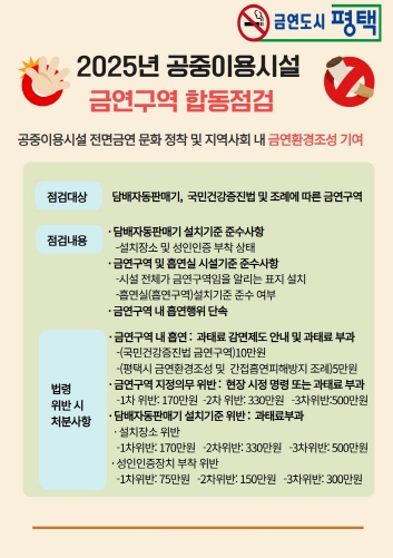 ![]() 평택시, 2025년 하반기 공중이용시설 금연 합동 지도점검 |