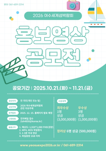 결과는 12월 중순 발표될 예정이며, 자세한 사항은 2026여수세계섬박람회 누리집에서 확인할 수 있다.