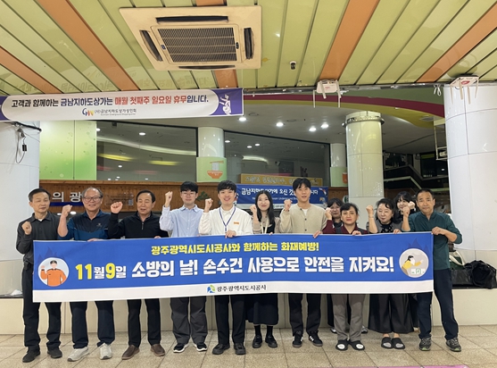 이번 행사는 “손수건 사용으로 안전을 지켜요!”를 슬로건으로 진행됐으며 공사는 지하도상가를 찾은 시민들에게 화재대피용 손수건을 배부하며 올바른 사용법과 화재 시 대피 요령을 함께 안내했다.