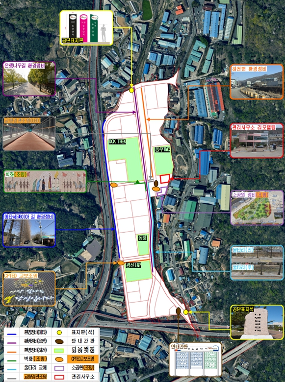 이번 사업은 관리사무소를 중심으로 산업단지 유휴시설을 정비, 근로자가 가벼운 휴식과 산책, 담소를 즐기며 편안함을 느낄 수 있는 공간을 만드는 데 중점을 두고 있다.