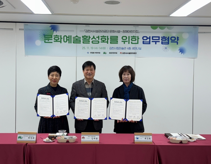 김재광 이사장은 “이번 업무협약을 통해 김천시립미술관이 지역 내 장애 아동·청소년들에게 보다 폭넓은 문화예술 경험을 제공할 수 있게 되어 뜻깊다”며 “앞으로도 기관 간 협력을 강화하여 모두가 함께 누릴 수 있는 문화예술 환경 조성에 지속적으로 힘쓰겠다”고 전했다.