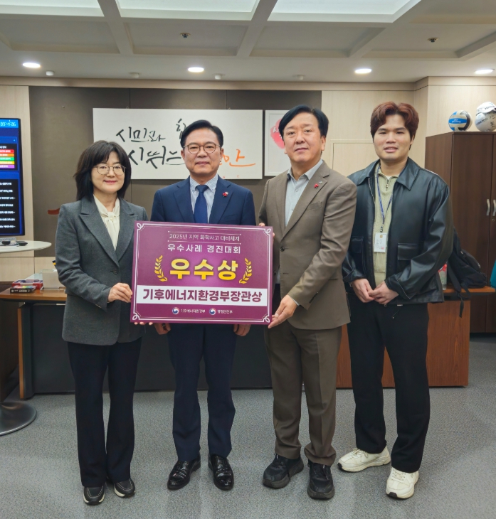 ![]() 천안시가 지난 24일 서울 용산 드래곤시티에서 열린 제3회 화학사고 지역대비체계 우수사례 경진대회에서 우수기관에 선정돼 기후에너지환경부장관상을 수상하고, 기념촬영을 하고 있다. |