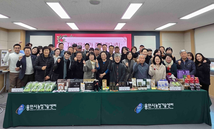 ![]() 28일 용인시농업기술센터에서 평가회 참석자들이 기념사진을 촬영하고 있다 |