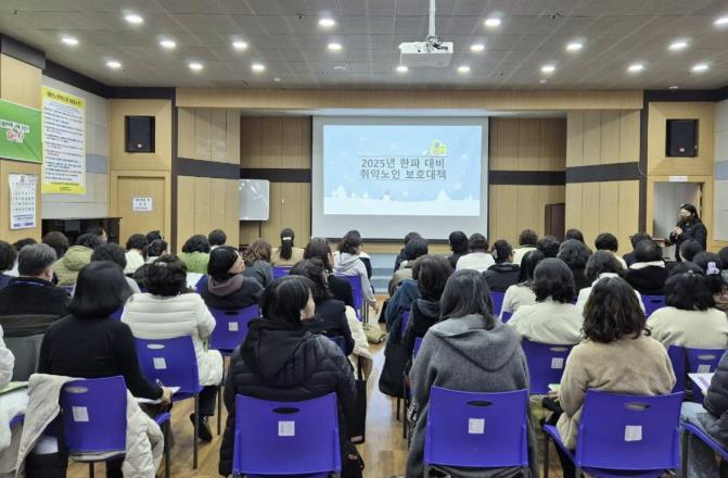![]() 28일 태안노인복지관에서 진행된 혹한기 대응 안전교육 모습. |