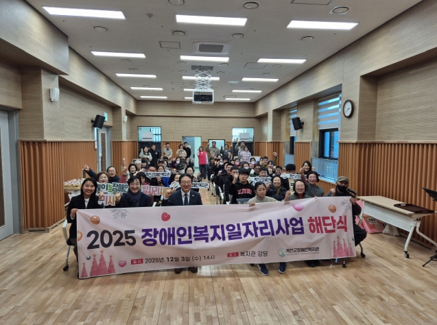 이날 행사는 우수참여자 시상으로 시작해 황명구 관장의 인사말, 참여자 활동 소감 발표, 2025년 사업성과 보고 및 2026년도 장애인복지일자리 참여자 모집 안내 순으로 진행됐다.