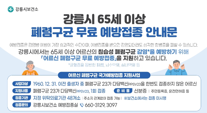![]() 65세 이상 어르신, 폐렴구균 예방접종 |