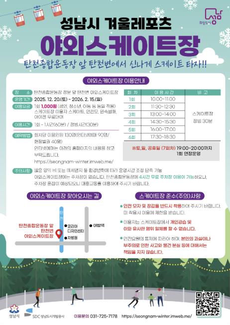 ![]() 성남시 분당구 야탑동 탄천변 야외 스케이트장 운영 안내문 |