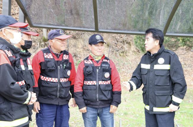 ![]() 봄철 최재형 군수가 산불진화대원들을 격려하는 모습 |