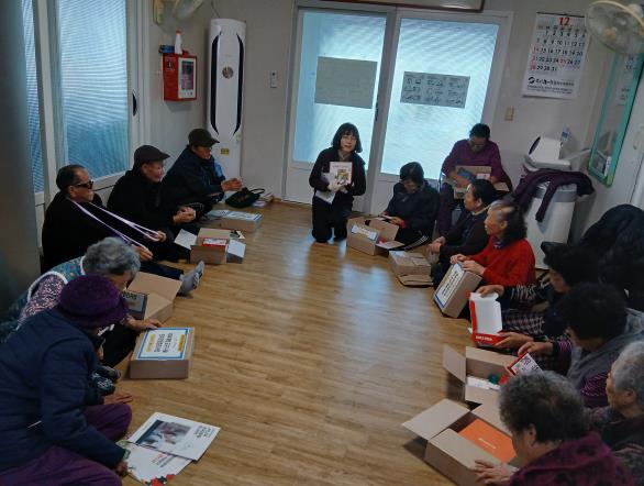 선물꾸러미에는 모자이크 모양놀이, 스틱 모양 맞추기, 만다라 색칠북, 인지활동북, 스트레칭 밴드, 마사지볼 등 총 7종의 치매예방교구가 포함됐으며 지역 내 65세 이상 취약계층 어르신 40명에게 배부했다.