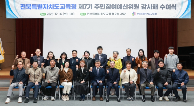전북교육청은 16일 2층 강당에서 ‘제7기 주민참여예산위원회 위원 감사패’ 수여식을 개최했다고 밝혔다.