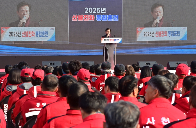 조규일 진주시장은 “진주시에서 2025년 산불진화 통합훈련을 실시할 수 있도록 협조해 주신 경남도를 비롯한 유관기관에 감사드린다”며 “30년 전 산불이 발생했던 월아산이 다시 울창한 숲으로 복원돼 조성된 ‘월아산 숲속의 진주’에는 많은 방문객이 찾고 있다. 그만큼 소중한 산림자원을 지키는 것이 중요하며, 특히 산불재난으로 인한 인명 피해가 발생하지 않도록 오늘 훈련을 바탕으로 산불 예방과 대응에 최선을 다하겠다”고 밝혔다.